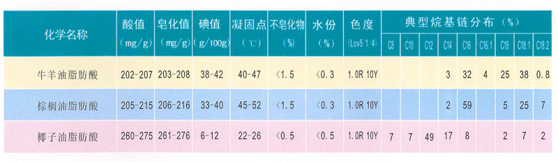 化学名: RCOOH(R为牛脂基、棕榈基、椰油基)